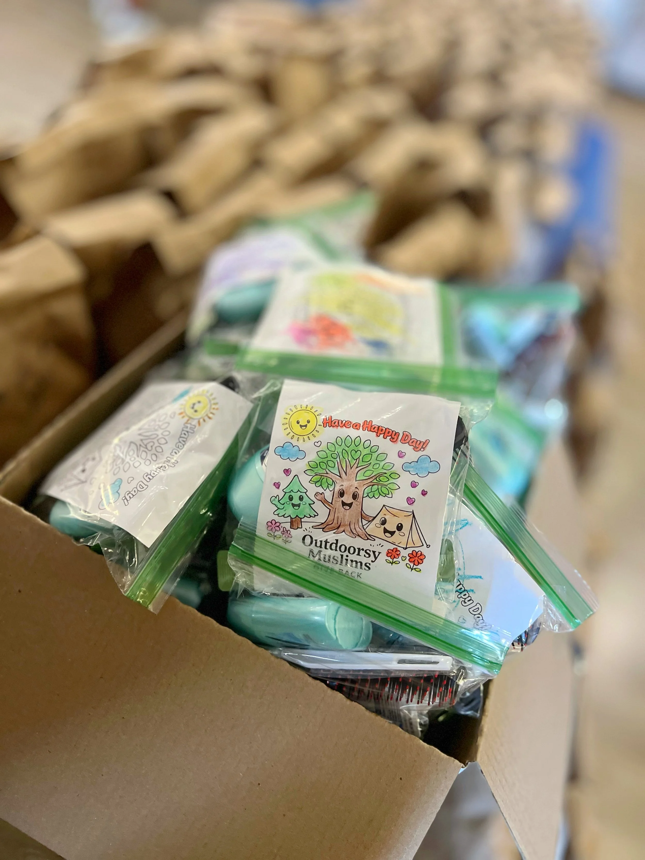 Our first event was held in partnership with the ICNA Women’s Shelter. Volunteers came together to assemble hygiene kits for women in need. These kits included essential personal care items that many individuals rely on but may not always have access to. Thanks to the incredible generosity of donors and supporters, our volunteers were able to assemble an impressive 400 hygiene kits, while also collecting baby formula, diapers, and sanitary products. Many of the kits were provided to the local women’s shelter, and additional kits were distributed to other organizations serving individuals facing difficult circumstances.